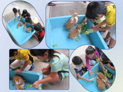 給食が終わるとすぐに来たと思われる子たちが,担当の飼育委員よりも早く来て待っていました。