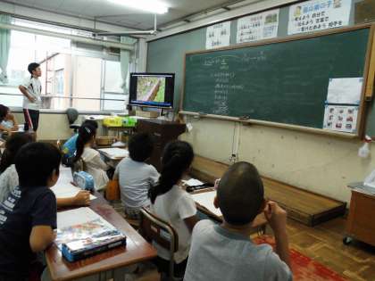 3年1組は昆虫のすみかの予想をして,3年2組は「蛍が育つ水」のビデオを見ました。