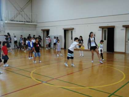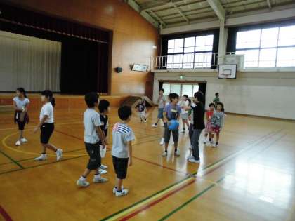 体育館では,はじめの言葉の後,それぞれのグループに分かれて,ドッジボール,バスケットボール,リレーが行われました。
