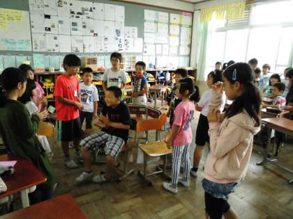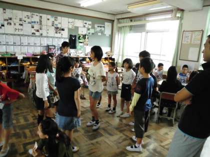 他の教室では,ジェスチャーゲーム・何でもバスケット・震源地ゲーム・いす取りゲームなどをして1年生から6年生まで楽しい時間を過ごしていました。