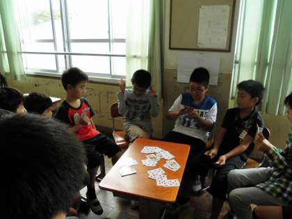 中間休みにたて割り遊びをしました。教室ではトランプでババぬきをしました。