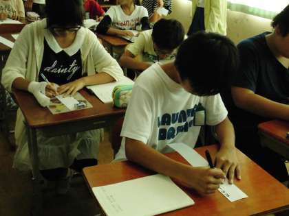 6年1組では,国語で学習した短歌を清書していました。