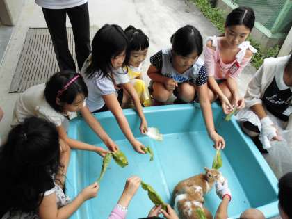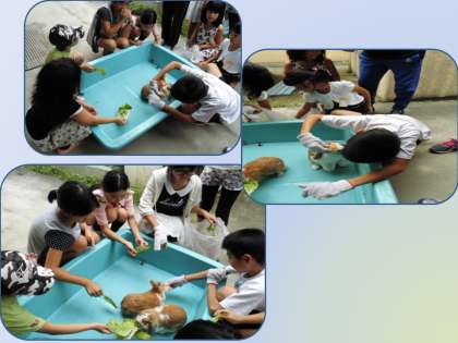4年生がメインの日でしたが,1・2年生がもう一度ふれあいたいと集まってきました。うさぎたちにエサをあげたり背中をなでたりしていました。