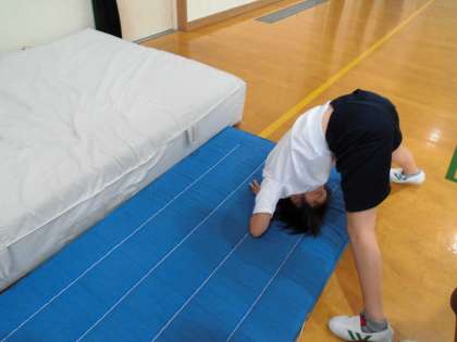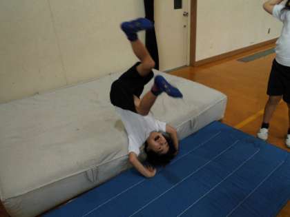 3年2組の子たちが逆立ちの」練習をしていたのであおぞらの子もチャレンジしました。
