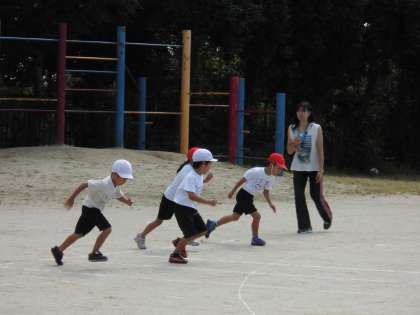 1年生は,運動会で走る50m走の練習をしていました。
