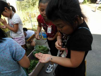 3年生と中庭で生き物探しをしました。