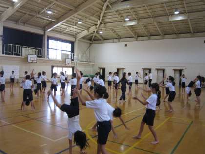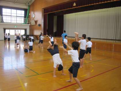 逆立ちができなくて苦労している子も見られました。これから運動会までの間に,できるように練習を重ねていきます。