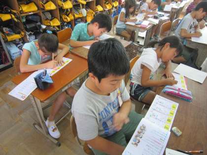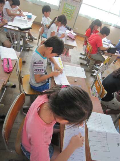 3年2組では,漢字ドリルを使って,漢字の練習をしていました。