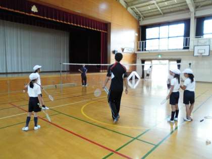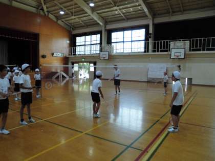バドミントンクラブでは,ダブルスの試合をしてこれまでの練習の成果を試していました。