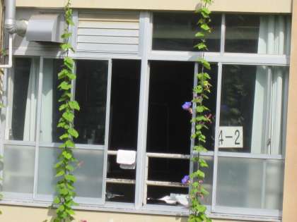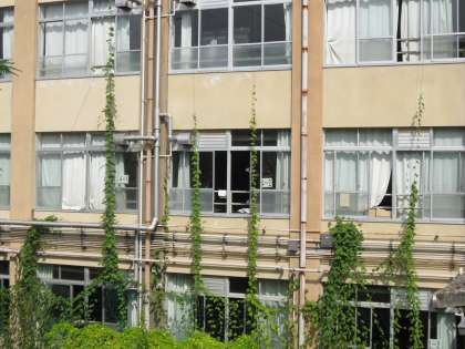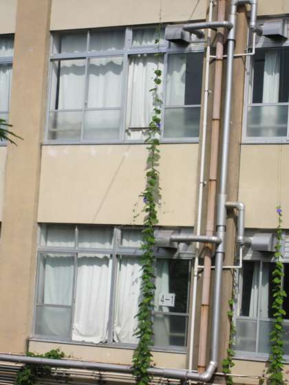 緑のカーテンが,3階まで伸びています。