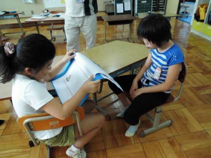 誕生日の歌を歌った後に,誕生カードを渡しました。もらった人はとても嬉しそうでした。