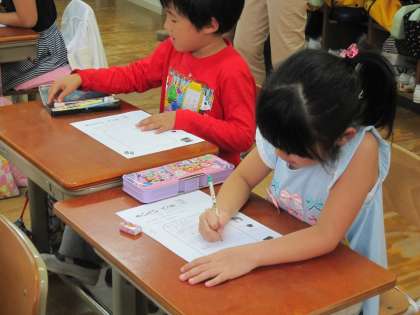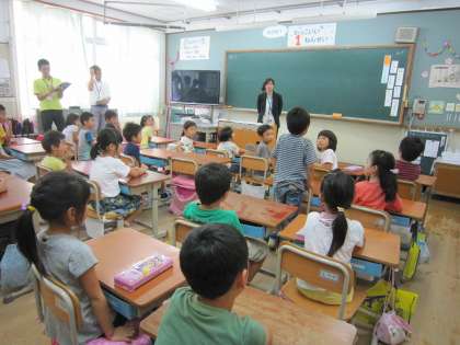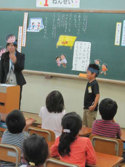 1年1組では,5校時に「道徳」をしました。このとき,他の教員も授業を参観させてもらいました。