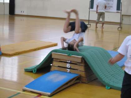 かかえこみとびは,とびばこの中央部分がないもので練習したりしていました。