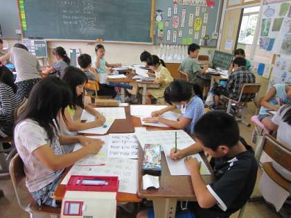 4年1組では,図工で「お話の絵」に取り組んでいます。
