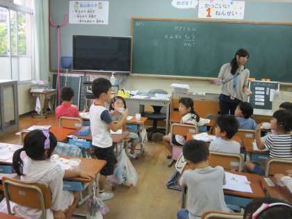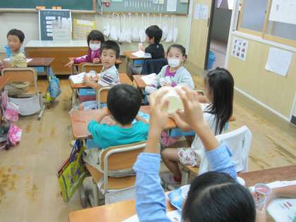今日は,それぞれおうちから持ってきた容器を使って,どちらに水がたくさん入るのかを考えようとしていました。