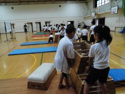 みんなで協力して準備をしてから,技に挑戦しました。