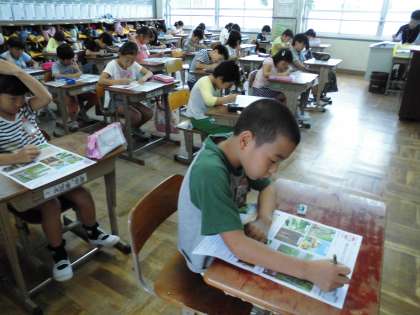2組では,昆虫のすみかのまとめをして,そのあとテストをしました。