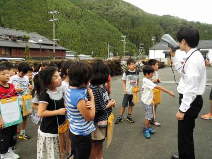 土井のしば漬け工場では,工場の人から注意点を聞いてから,大きな樽の前で漬け方の説明を聞きました。
