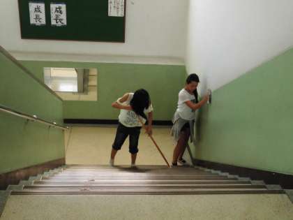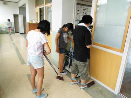 中校舎3階の様子を見に行くと,がまん玉を磨きながら分担場所をきれいにしていました。