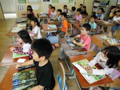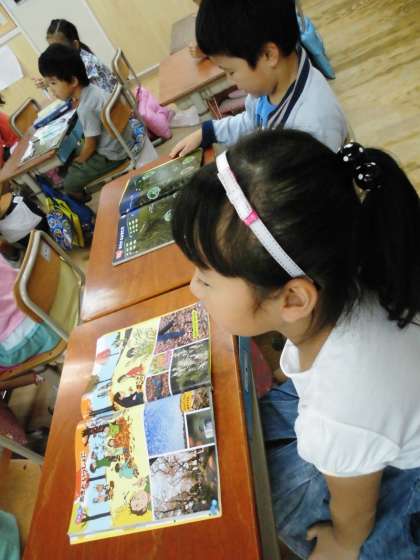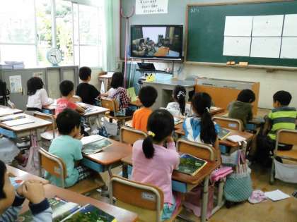 1年1組では,生活科で季節のことを学習します。今日は,映像資料を見ながらこれまでの復習をしていました。