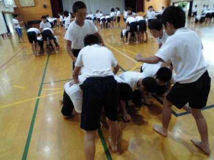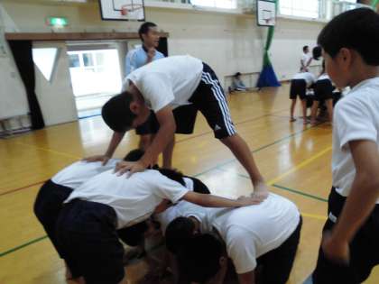 組体操の7人組の技にも挑戦しました。土台の子が力を出して踏ん張っていました。