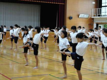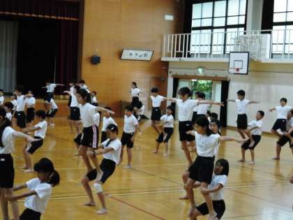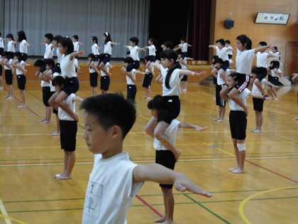 運動会に向けて,5・6年生そろっての練習も始まっています。