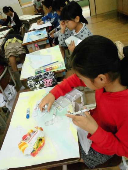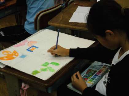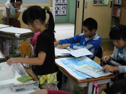 4年1組では,お話の絵に取り組んでいました。