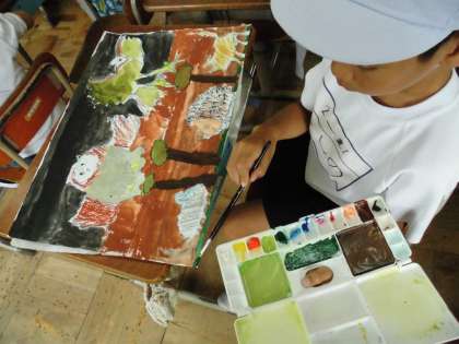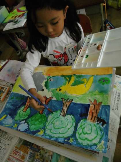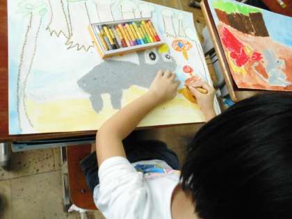 2年1組では,ここにはどの色が合うのかなと考えながら塗っているようでした。