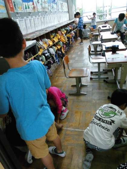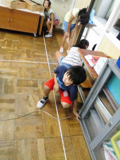 メジャーはぴんと張らないとうまく測れないので,声を掛け合って測ろうとしていました。