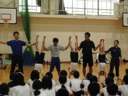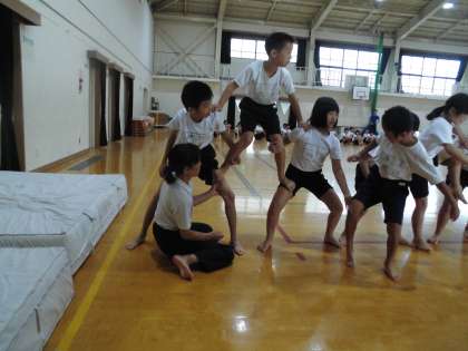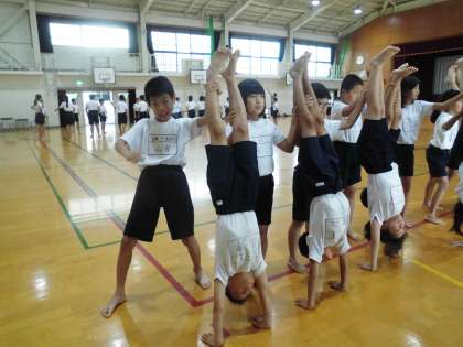 組体操の新しい技に挑戦です。まず,見本を見せてもらってやりました。