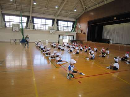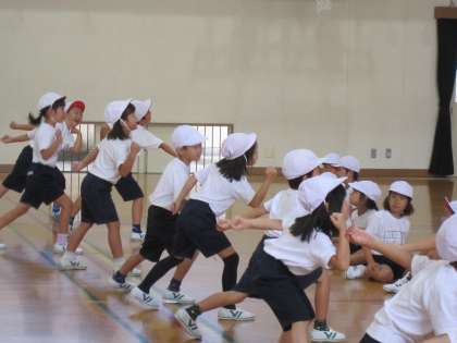 1年生は,団体競技の前に踊る演技の練習中です。