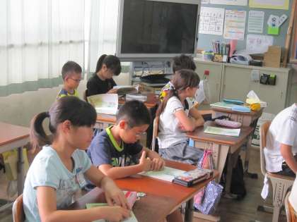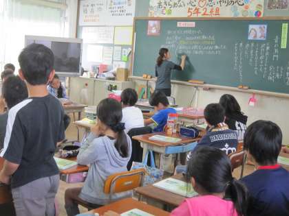 5年2組では,道徳で「青の洞門」という資料を使って,人間の心を超えた心についてみんなで考えました。