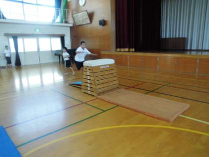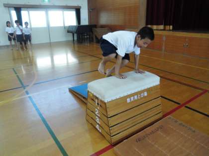 久しぶりの跳び箱運動です。ねらいに従って挑戦しました。