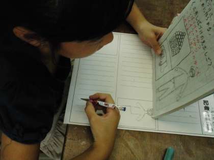 子ども達は,見学して気づいたことを新聞に織り込もうとしていました。