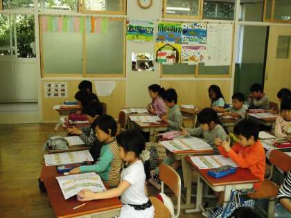1年1組では,テストを返していました。