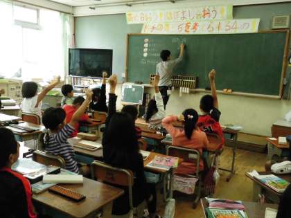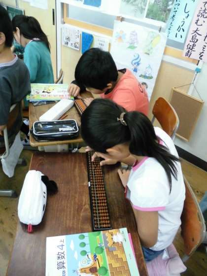4年2組では,そろばんの練習をしていました。