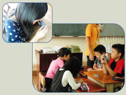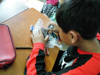 4年1組では,みさきの家の活動から持ち帰った「石」に絵を描いていました。