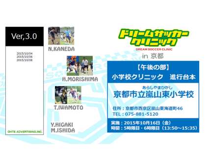 10月16日(金)「ドリームサッカークリニックin京都」が本校で行われます。