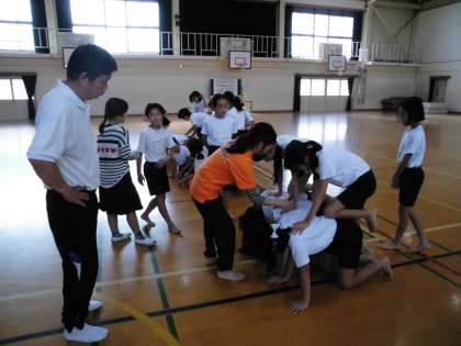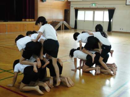 安全にできるように,組んでいく順番や手の付き方などを確認しながら練習をしています。