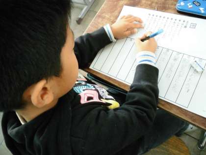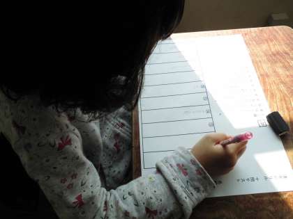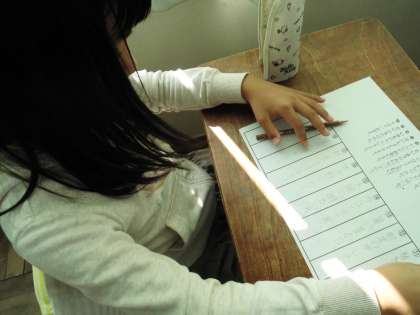 「はし」をわたる・「へや」のなかにはいるなどの漢字を書いていました。