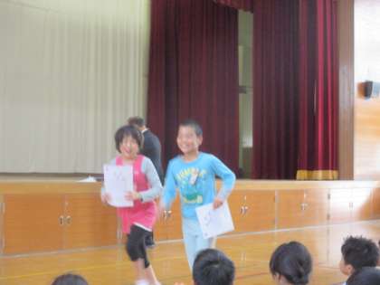 5時間目の前期終業式では,書写や図工展で入選したので,表彰状をもらいました。