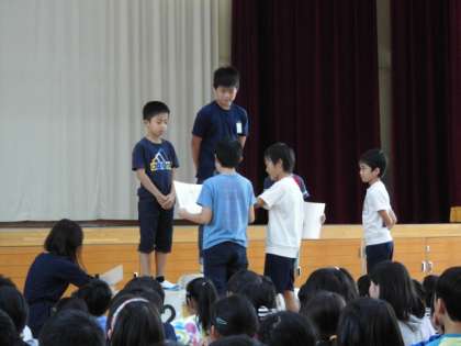 その後,運動委員会の「ドッジボール大会」の表彰式がありました。