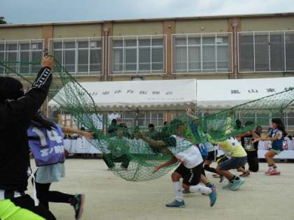 プラグラムNO12.障害物競争です。4つの障害物走をクリアーしてゴールを目指します。1つ目の障害はネットです。低い体制でくぐりぬけるとチャンスが広がります。