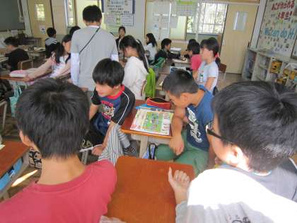 I want to go to〜.やHow about you?を使って英語に親しんでいました。