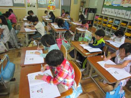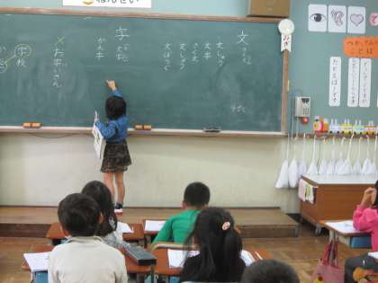1年生は,ひらがなやカタカナの学習の後,漢字の学習に取り組んでいます。