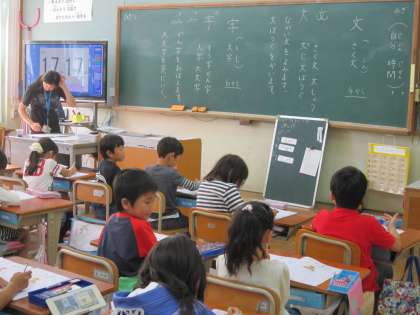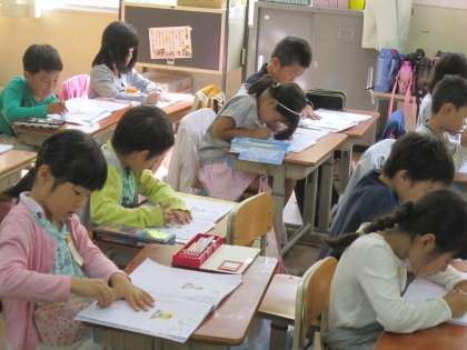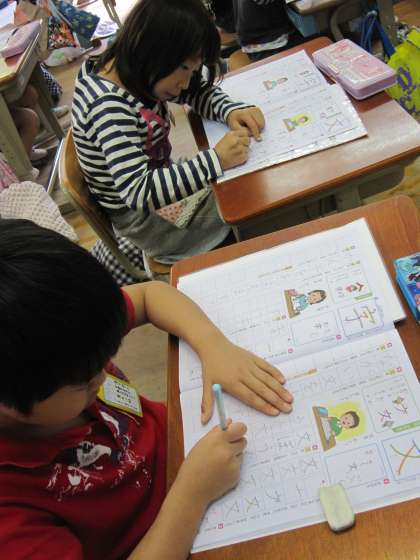 今日の1年生は,「文」と「字」の練習をしていました。