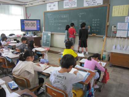 3年1組では,算数の時間に「わり算」の学習をしていました。