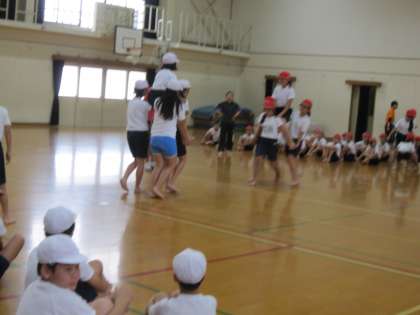 実際に対戦するときには,帽子を取り合う子たちは手袋をします。