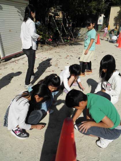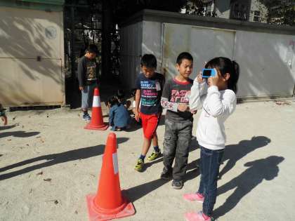 3年生の理科で,影の方向がどのように変わっていくのかを観察しました。