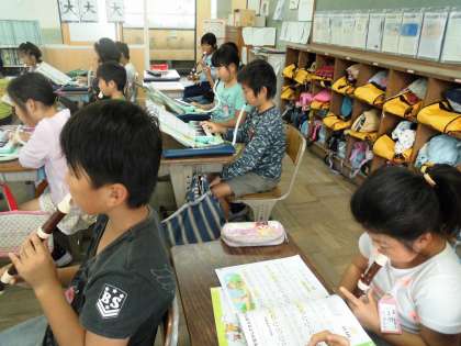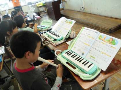 3年生の音楽は,リコーダーと鍵盤ハーモニカを使って合奏をしました。きれいなハーモニーが聞こえてきました。